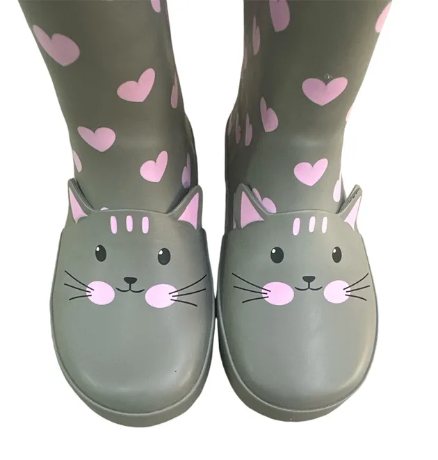 מגפי גשם לילדות Candy דגם חתול - אפור