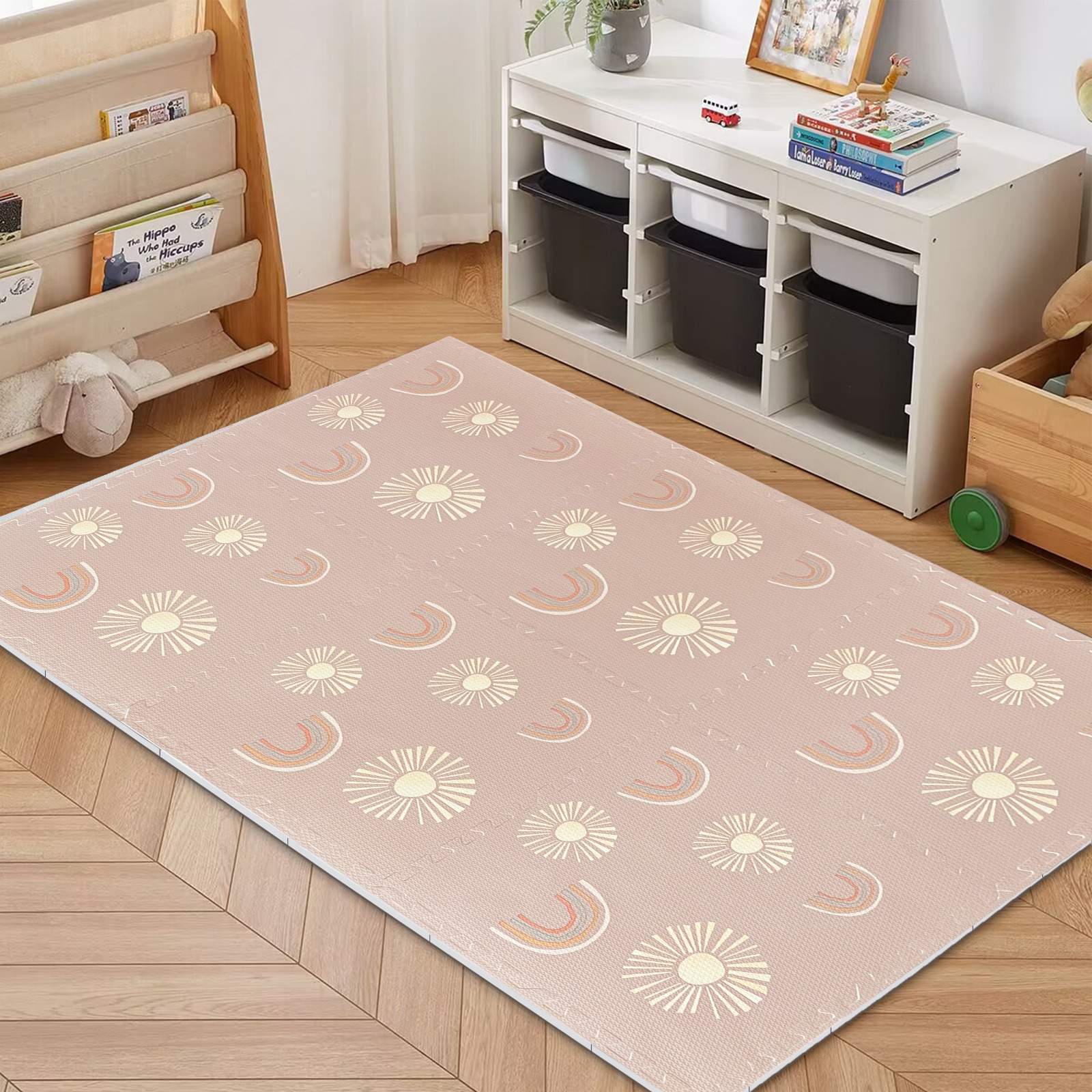 משטח פעילות מודולרי לתינוק -קשת בענן וורוד 180*240 ס"מ XXL